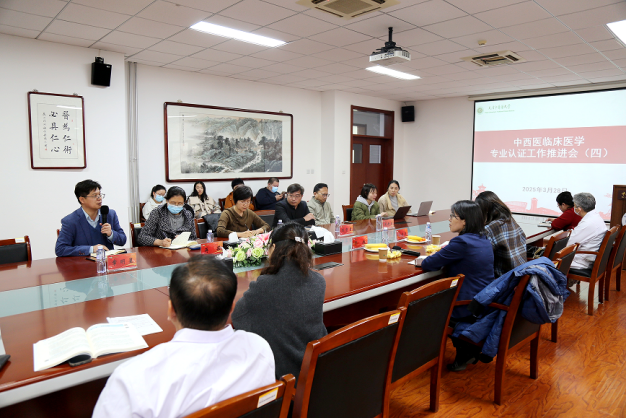 自2025年3月20日开始,每周四下午召开中西医临床医学专业认证工作例会,跟进工作进度,部署下一步工作安排。教务处、中西医结合学院以及各相关职能部门负责人参加。3月20日下午第一次例会,边育红院长对指标进行简单解读,张志国处长对认证报告的撰写进行分工。